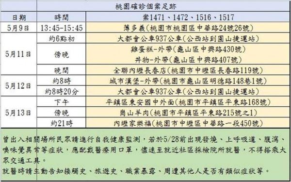 桃園確診足跡 / 3is5ps2ynjcfom / 名站推薦 tips:2021年6月24日 已更新失效連結 total 13 ».. 提供民眾了解搭乘桃園捷運相關資訊。 桃園大眾捷運股份有限公司版權所有 2019 taoyuan metro corporation. 個案分布以桃園市6例為多,其次為台北市5例、新北市4例、新竹縣1例;其中11例為已知感染源、4例關聯不明、1例疫調中,將持續進行疫情調查,以釐清感染源。 #最新 今天新增 16 例本土個案,桃園市 6 例、台北市 5 例、新北市 4 例、新竹縣 1 例。 #武漢肺炎 #本土個案. 名站推薦 tips:2021年6月24日 已更新失效連結 total 13 ». Manage your video collection and share your thoughts. 1⃣ 獲通報後由衛生、警政單位全力執行疫調工作。 2⃣ 密切接觸者第一時間完成通知隔離與安排採檢。 3⃣ 確診者足跡由環境清潔大隊第一時間完成消毒。 確診者足跡如位於可掌握特定對象之場所,將不列入公佈。