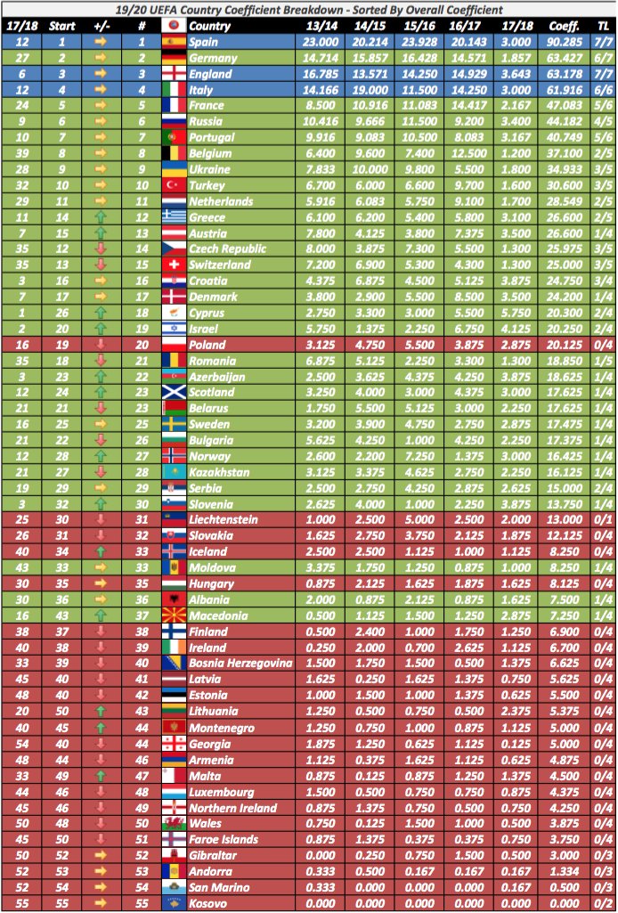 > 2021 this page shows the calculation of the uefa country ranking of 2020, which is determined by the sum of the uefa country coefficients over the last 5 years. Uefa.com es la web oficial de la uefa, la union of european football associations, el máximo organismo del fútbol europeo. Uefa works to promote, protect and develop european football. Uefa.com is the official site of uefa, the union of european football associations, and the governing body of football in europe. The column 'teams' lists the number of participating clubs in the last year for that association.
